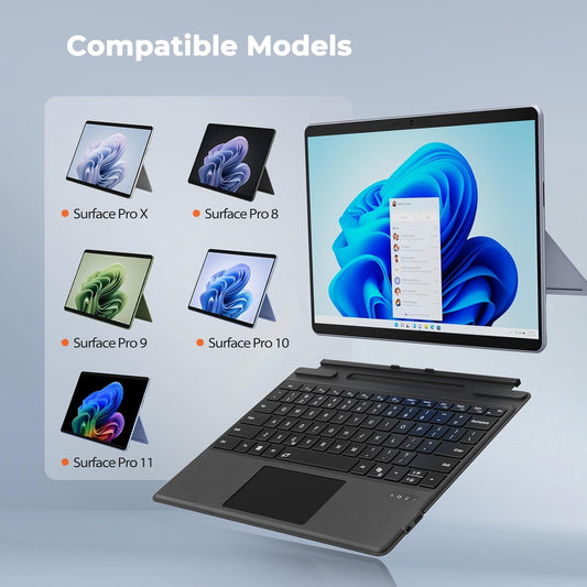 Surface Pro Keyboard for Microsoft Surface Pro 11/10/9/8/X 13", 7 Color Backlits, Detachable Bluetooth Wireless Keyboard with Pen Storage, Ultra-Slim Rechargeable Type Cover with Multi-Touch Trackpad