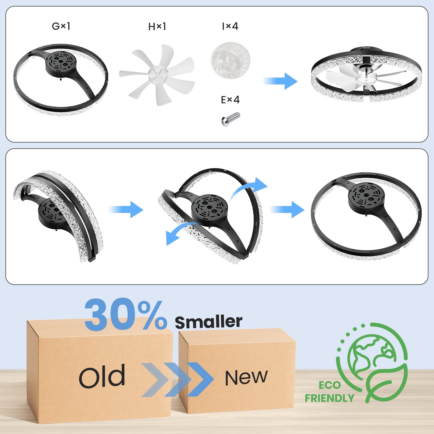 StarryEver Ceiling Fans with Lights and Remote, 18 Inch Modern Smart Ceiling Fan, 6 Speeds and 3000K-6500K Dimmable LED Fan Light, Low Profile Ceiling Fan for Bedroom, Living Room, Dining Room, Black