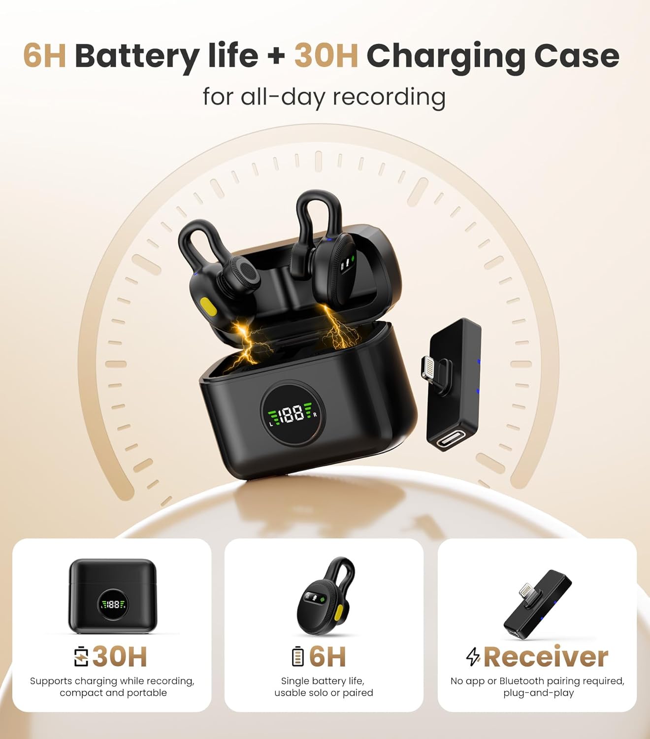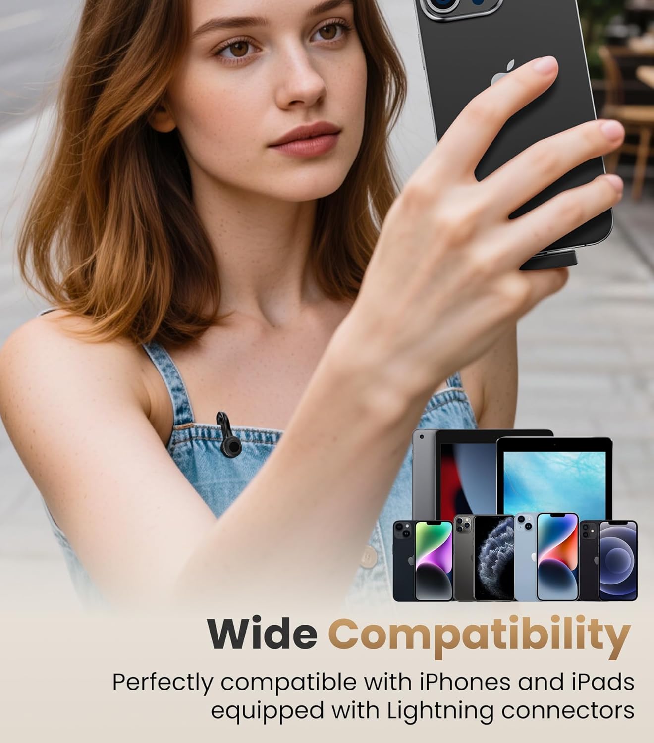 Tisino mini Wireless Lavalier Microphone for iPhone with Lighting Plug, Noise Reduction Mini Clip-on Lapel Mic with Charging Case, Portable for YouTube, TikTok, Vlog, Podcast, Interview Black