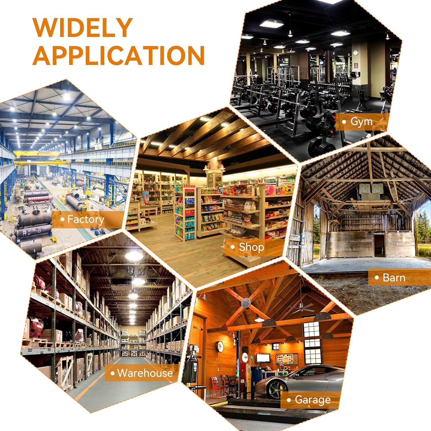 This High Bay LED Shop Lights comes with a durable G-shape hanging ring, you could hang it to any ceiling.